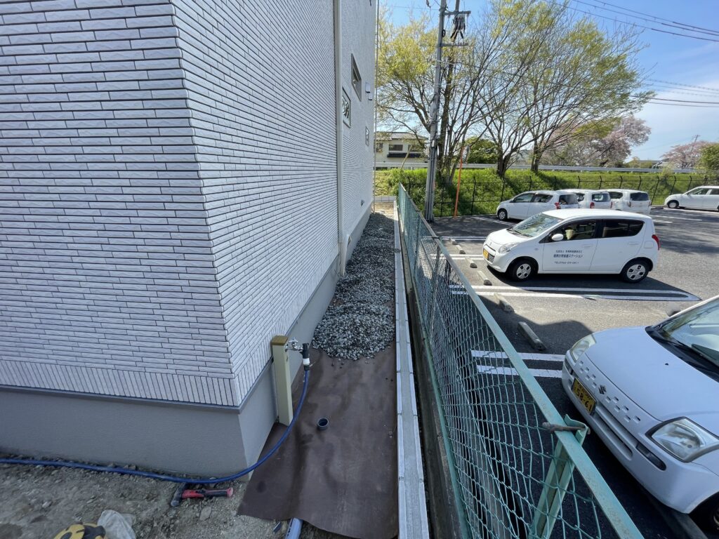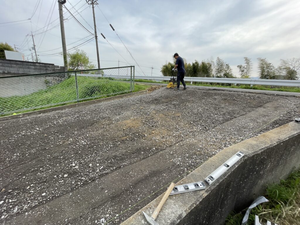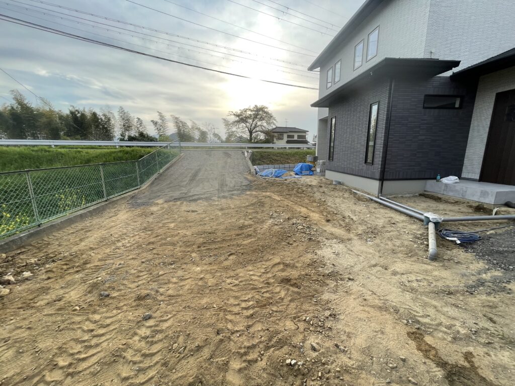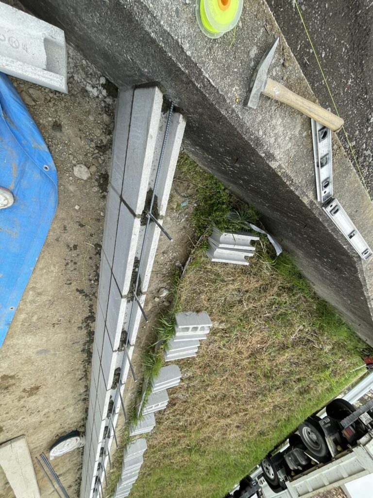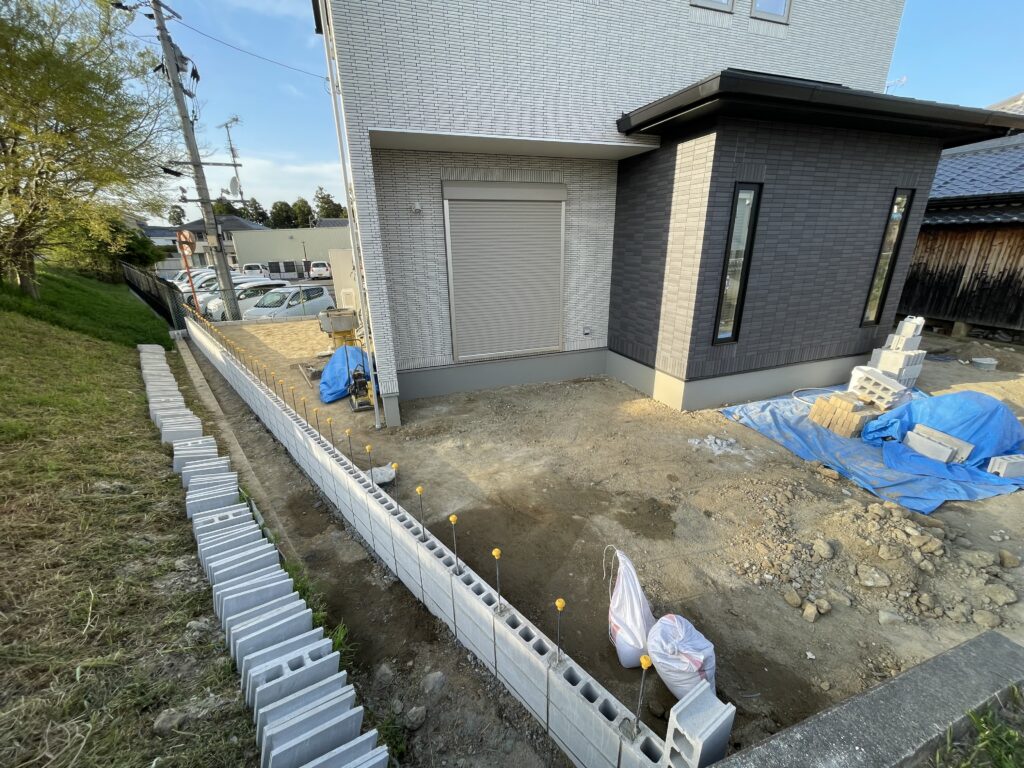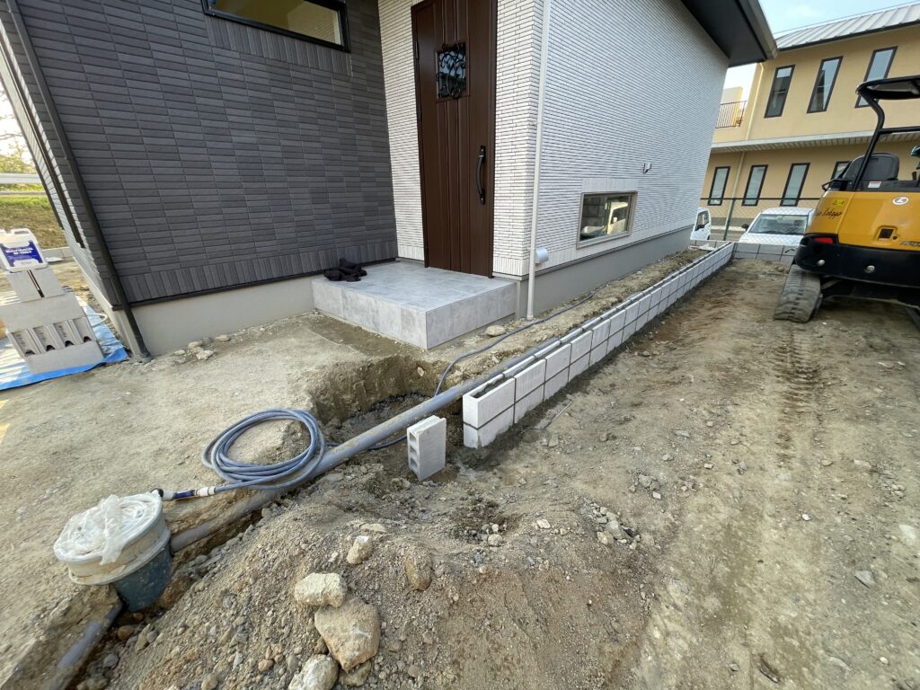 K様邸外構工事、ブロック積み、掘削、整地、防草シート、砂利敷きを行いました。
