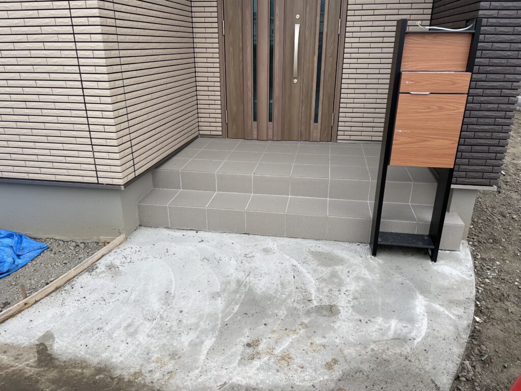 寝屋川市S様邸外構工事、ブロック、カーポート、システム門柱、乱形石の下地、整地を行いました。
