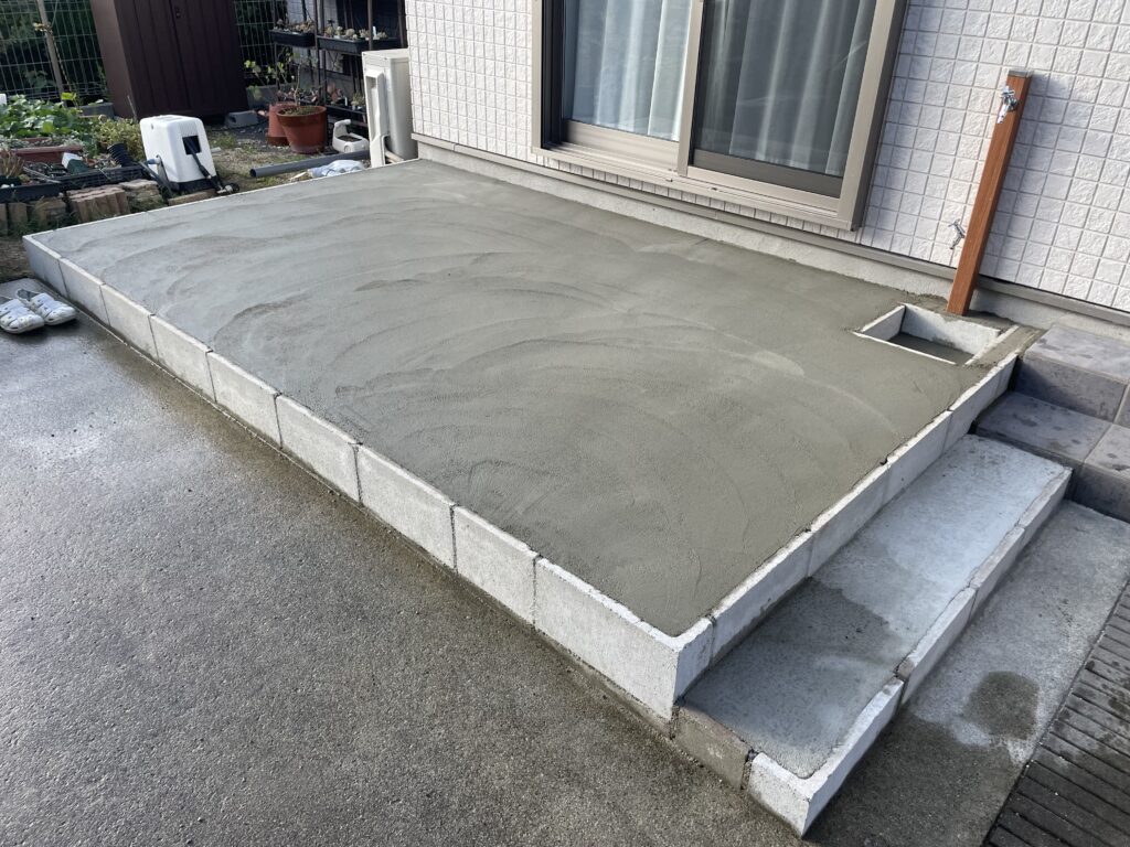タイルデッキ下地、土間解体、ブロック枠工事を行いました。 S様ありがとうございました。